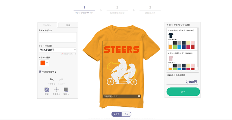 クラウドファンディング型Tシャツ販売サイト「STEERS」Tシャツデザインエディタの開発